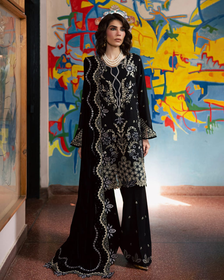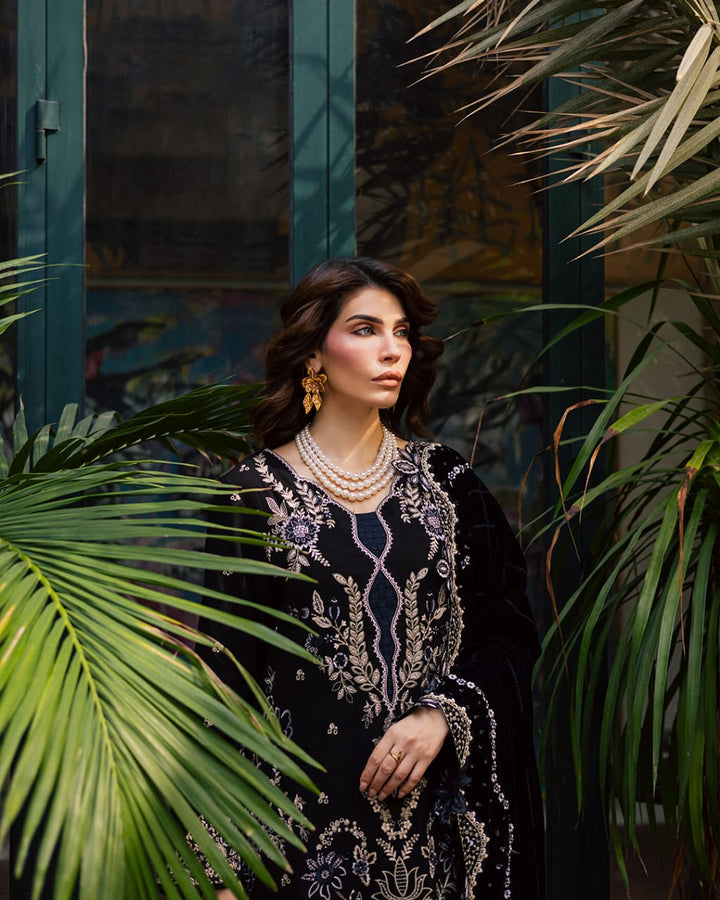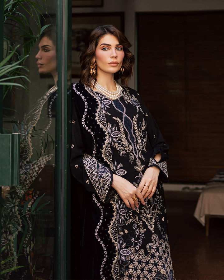 *Exclusive collection by Nurèh* *Embroidered leather peach collection with embroidered velvet shawl*